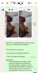 We scheduled, and rescheduled as if as we both are still holding a part of us to just bring the pregnancy to term. April 18, the moment we started to do it like there was no going back when I took the first capsule.
